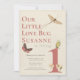 Este belo e elegante convite de primeiro aniversario para bebês mostra insetos antigos em um antigo fundo de papel com borboletas um delicado inseto voador e flores. O verso apresenta um padrão de bolinhas rosa-doce. Personalize o script cor-de-rosa para suas necessidades. Verifique a coleção para coordenar produtos.