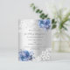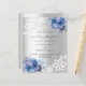 Para um casamento elegante e romântico. Um fundo com aspecto fino prateado decorado com flores azuis, rosas e rendas brancas. Personalize e adicione seus nomes e detalhes. 1 folha = 1 convite impresso de borda a borda.
