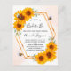 Um fundo na moda branco e rosa dourado, de cor aquosa. Um falso quadro geométrico dourado e abelhões. Com o texto: Bride to Bee o nome da noiva na frente, escrito com um moderno estilo escrito à mão. Letras negras. Traseiro: design postal. Dica: Se você não quiser que pareça um cartão postal, clique em personalizar, vá para o verso e remova o divisor e o carimbo de posto.