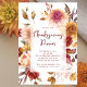 Este convite de Ação de Graças apresenta um belo buquê de flores coloridas do outono, fazer-o perfeito para um encontro festivo de férias. O convite é simples e elegante, com fundo branco e texto preto. O buquê das flores do outono adiciona um toque de chorona e diversão, e o design geral é perfeito para celebrar o feriado de Ação de Graças com seus entes queridos.
