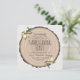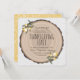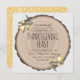O convite jante de Ação de Graças da Rússia para design de Shelby Allison, com uma placa redonda de madeira com latido cortado de uma árvore com flores amarelas.