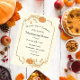 Celebre o Dia de Ação de Graças em estilo com este elegante convite à folha de ouro. Apresentando delicados sotaques de folha, tipografia refinada e um sofisticado design de creme, este convite personalizável adiciona luxo à sua reunião de férias. Personalize com seus detalhes hoje!