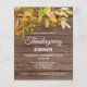 Convide familiares e amigos para o seu janto de Ação de Graças com este convite rústico. É decorado com folhas de aquarelas do outono em cores do outono, num fundo de madeira de celeiro. Facilmente personalizável. Original Watercolor © Michele Davies.
