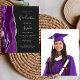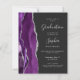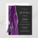 Este convite de festa de formatura de tendência apresenta uma imagem de aquarela de um geode agado em tons de roxo, com realces falsos de brilho prateado. A palavra "Graduação" e o primeiro nome do formando aparecem em um guião elegante de cinza prateada, em fundo preto, junto com os detalhes do partido em fontes sans serif e itálico. Substitua facilmente a imagem de amostra na parte traseira por uma foto vertical do formando.