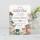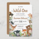 Esta divertida e excitante "Wild One Chá de fraldas Invitation" é perfeita para aqueles que adoram brincar em naturezas de quintal. Este convite divertido e festivo mostra uma equipe de animais bonitos, incluindo veados, gambás, raposa, coruja de coelhos, guaxinim e esquilo! A fonte divertida e divertida e o sortido colorido de animais florestais colocados em uma cama de flores silvestres realmente faz esse convite se destacar do resto. Perfeito para um chá de primavera ou ano inteiro! Peça seus convites para o chá de bebê "Wild One" hoje e deixe a festa começar!
