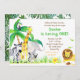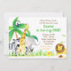Convite de aniversário em aquarela com animais da selva/animais do zoológico para rapazes 1 rua ou segundo aniversário/chá de fraldas. Com elefante, leão, girafa, zebra.