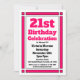 Enviar convites para uma celebração de aniversário de 21 anos com este Convite para aniversário de 21 anos cor-de-rosa. Ele pode ser personalizado com suas informações pessoais.