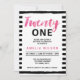Convide amigos e família com este convite de aniversário de 21 anos de listras brancas e pretas com a palavra "vinte" em bonito cor-de-água rosa. Personalize este convite substituindo o texto do marcador de posição no modelo. Para obter mais opções, como alterar a fonte e seu tamanho, clique no botão "Personalizar". *Observe que a Marca d'água Zazzle que aparece na visualização de zoom NÃO aparecerá no produto impresso final © Rosewood e Citrus