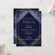 Ouro clássico e convite de festas de couro azul. O texto pode ser personalizado para seus aniversários, chás de panela ou qualquer tipo de celebração.