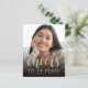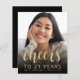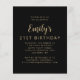 A frente deste convite para aniversário de 21 anos apresenta a foto do convidado de honra com uma camada de texto dourada. A palavra "torcida" aparece num elegante roteiro de caligrafia dourada, seguido de "até 21 anos" e do nome e aniversário do convidado de honra em sans serif font. Uma tela escura ajuda a tornar o texto pop. Personalize o lado inverso com o nome e os detalhes da parte em um plano de fundo preto. Uma forma excelente de celebrar alguém que está fazendo 21 anos! (NOTA: Os envelopes não são incluídos automaticamente com este convite orçamental. Para adicionar envelopes ao seu pedido, use o menu suspenso "Envelopes".)