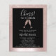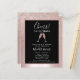 Num fundo de folha metálica cor-de-rosa-claro, o nosso elegante convite de festas de orçamento aniversário de 21 anos apresenta uma camada de ombro brilhante com uma luva de champanhe borbulhante, a torrar a honra da aniversário de 21 anos. Em um quadro preto com uma borda rosa dourada, você encontrará um texto de exemplo que pode ser facilmente revisado no modelo de personalização.