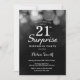 Placa de Convite para aniversário de 21 anos Surpresa de Lixo. Aniversário Adulto. Fundo Do Bokeh De Silver Glitter. 13 15 16th 18th 10th 21rua 30 40th 50th 60th 70 80 100th. Qualquer Idade. Para mais personalização, clique no botão "Personalizar" e use nossa ferramenta de design para modificar este modelo.