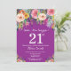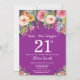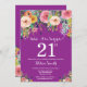 Convite para aniversário de 21 anos de Surpresa Floral Roxa para Mulheres. Flor Floral de Aquarela. Fundo Violeta Lavanda Lilac Roxo. Rosa, Amarelo, Laranja, Flor Roxo. Aniversário Adulto. 13 15 16º 18º 20 21rua 30 40º 50º 60º 80 de 70 100º, qualquer idade. Para mais personalização, clique no botão "Personalizar" e use nossa ferramenta de design para modificar este modelo.