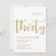 Simples branco e ouro "Trinta" personalizado convite para aniversário de 30 anos com tipografia clássica e moderna. Personalize com nome, idade e detalhes da parte.
