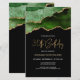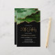 Este convite de aniversário de 30 anos de tendência apresenta uma imagem de aquarela de um geode agado em tons de verde com realces de ouro falsos. As palavras "aniversário de 30 anos" aparecem na falsa brilha dourada em letra decorativa moderna de escrita manual. Personalize-o com o nome do honroso em texto dourado e os detalhes em branco. A mesma imagem verde agate aparece no lado oposto.