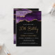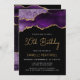 Este elegante convite de festas apresenta uma imagem de aquarela de um geode agado em tons de roxo com realces de brilho dourado falsos. As palavras "aniversário de 30 anos" aparecem em um guião de escrita manual de cor dourada. Personalize-o com o nome da honraria em texto dourado e os detalhes em branco sobre fundo preto. Um design de agate roxo e dourado correspondente aparece no lado oposto.