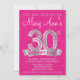 Este convite para aniversário de 30 anos apresenta uma clad de prata e diamante 30 com ousadia na frente e no centro. É o convite de aniversário perfeito para qualquer jovem que comemore seu 30.