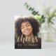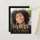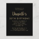 A frente deste convite para aniversário de 30 anos apresenta a foto do convidado de honra com uma camada de texto dourada. A palavra "torcida" aparece num elegante roteiro de caligrafia dourada, seguido de "até 30 anos" e do nome e aniversário do convidado de honra em sans serif font. Uma tela escura ajuda a tornar o texto pop. Personalize o lado inverso com o nome e os detalhes da parte em um plano de fundo preto. Uma forma excelente de celebrar alguém que está fazendo trinta anos! (NOTA: Os envelopes não são incluídos automaticamente com este convite orçamental. Para adicionar envelopes ao seu pedido, use o menu suspenso "Envelopes".)