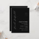 Faça uma declaração ousada e na moda com este convite de aniversário de preto moderno. Apresentando caligrafia branca graciosa, detalhes clássicos da serif e um delicado sotaque floral de line-art, este design minimalista é perfeito para celebrar um aniversário de 30 anos—ou qualquer marco—com elegância e impacto. Ideal para eventos noturnos, coquetéis ou jantas formais. Totalmente personalizável com nome, data, local e RSVP.
