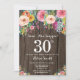 Rustic Floral Surprise aniversário de 30 anos Convite para Mulheres. Flor Floral de Água. A Rústica Região Da Madeira Vintage Retro Background. Rosa, Amarelo, Laranja, Flor Roxo. Aniversário Adulto. 13 15 16º 18º 20 21 rua 30 40º 50º 80 de 60º 70 de 100º, qualquer idade.