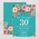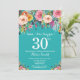 aniversário de 30 anos de Surpresa Teal Floral Convite para Mulheres. Flor Floral de Água. Fundo do Teal Aqua Turquoise. Rosa, Amarelo, Laranja, Flor Roxo. Aniversário Adulto. 13 15 16º 18º 20 21 rua 30 40º 50º 80 de 60º 70 de 100º, qualquer idade. Para mais personalização, clique no botão "Personalizar" e use a ferramenta design para modificar este modelo.