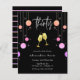 Comemore o grande aniversário de 30 anos em estilo e a acessibilidade com este moderno convite entre as meninas aniversário de 30 anos. Design apresenta a palavra "trinta" em uma fonte moderna manuscrita com uma borda de coloração brilhante e dois copos de champanhe dourados. No fundo do cartão, são apresentados os detalhes da celebração de aniversário, que pode ser totalmente personalizada de acordo com as suas necessidades. O lado inverso apresenta um bonito padrão de brilho cor-de-rosa listrado.