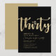 Simples preto e ouro "Trinta" personalizado convite para aniversário de 30 anos com tipografia clássica e moderna. Personalize com nome, idade e detalhes da parte.