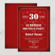 convite de aniversário surpresa 30 para homens ou mulheres. Retro vermelho elegante, design branco com fonte de script de tipografia. Até 30 anos! Pode ser personalizado para qualquer idade.