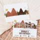 Adorável convite de aniversário para um terceiro aniversário. Perfeito para uma festa de aniversário temática ocidental. Possui cacto, montanhas, botas de vaqueiro e chapéu de vaqueiro.