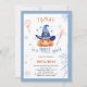 "Prepare-se para uma comemoração espetacular! O nosso "Pequeno Boo Está Quase Vindo" Convite de Aniversário do Bebê do Halloween está aqui, com tons azuis encantadores e amigos fantasmagóricos adoráveis. Este encantador convite é perfeito para um aniversário de bebês no Halloween, completo com deliciosos elementos de Halloween como abóboras sorridentes, estrelas cintilantes e teia de aranha.