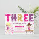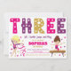 Convite para aniversário de 3 anos de ginástica | Ameixa, Rosa Quente, Dourada | Personalizado ● Os detalhes da brilha são simulados no trabalho de arte. No fazer deste produto não será utilizada qualquer brilho real. © Clipart por PrettyGrafikDesign © Puggy Impressões. Todos os direitos reservados.
