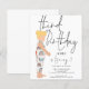 Um preço orçamentário menor, alternativo de papel de 4,5" x 5,6". Os envelopes são um extra opcional. Um design legal para a aniversário de 3 anos de sua filha tem uma escrita de estilo de letra de tendências e uma ilustração abstrato de uma menina loira em um doce dungarees com um padrão arco-íris um fundo branco.