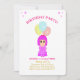 Aniversário de 3 anos de menina bonita com uma garota adorável vestida de rosa e três balões multicoloridos. E confete multicolorido do lado de trás. Todos os textos e números estão prontos para serem personalizados.
