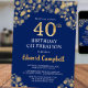 Convite para aniversário de 40 anos Azul e Dourado