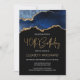 Este elegante convite para aniversário de 40 anos apresenta uma imagem de aquarela de um geode agado em tons de azul com realces de falso ouro. As palavras "aniversário de 40 anos" aparecem na falsa brilha dourada em letra decorativa moderna de escrita manual. Personalize-o com o nome do honroso em texto dourado e os detalhes em branco. A mesma imagem azul de agate aparece no lado inverso.
