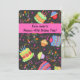 Este convite é excelente para uma festa divertida de aniversário de 40 anos. Todas as palavras são fáceis de personalizar. Um dos lados do convite tem um design de arte original colorida de bolos e cupcakes aleatórios de aniversário, a palavra arte "feliz aniversário", balões, velas, galerias e pontos em fundo preto. Uma tira rosa-quente fuchsia tem as palavras personalizáveis "Você é convidado", um nome personalizado e "aniversário de 40 anos partitura". O outro lado tem todos os campos para o seu partido. A fronteira é a mesma arte com uma área preta rosa-quente esboçada para todas as informações para torná-la seu próprio convite. Fácil de personalizar para outros eventos.