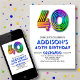 Este design de aniversário te levará ao entalhe. Grooves. Que seja. Apresentando tipografia ousada e retrô em um estilo cromático colorido, este design é o caminho mais simples para uma festa. O esquema de cores do arco-íris dá um sabor divertido, peculiar, ao design e o cromo traz a dinâmica da pista de dança da discoteca. Perfeito para seu gênio-Xer favorito ou adolescente sofisticado, qualquer um celebrando um aniversário de marco. Vejam a coleção hoje para coordenar peças para jogar facilmente uma cesta totalmente tubular.