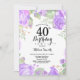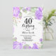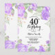 Convite Para aniversário de 40 anos De Roxo Botânico. Convite de Aniversário para Mulheres de Rosa Floral Flor Floral de Água. Rosa Rosa Rosa Elegante e Flores de Pequim. Aniversário Adulto. Fundo Branco.Preto & Branco. 13 15 16º 18º 20 21 rua 30 40º 50º 80 de 60º 70 de 100º, qualquer idade.