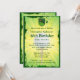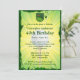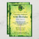 Você pode personalizar todo o texto deste convite de aniversário de 40° golfe. Você pode mudar o texto e o número na frente e usar isso para um aniversário de 50, 60 anos, 70 ou outro. O design apresenta um fundo brilhante de explosão solar amarelo e verde com uma bola de golfe branca central e uma lente e um pequeno emblema com uma bandeira num buraco. Verde, amarelo e branco.