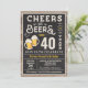 Convite para aniversário de 40 anos de saudações e cervejas, com conselho de giz e inscrição com idade personalizável.