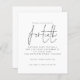 Convite de festas de aniversário de 40 anos de Script Branco Preto Simples de Orçamento. Um alternativo de 4,5 pol x 5,6 pol com preço inferior. Disponível em um STOCK DE CARTÃO SEMI GLOSS 110 lb, que é a opção padrão (recomendada para convites, semelhante à espessura de um cartão postal) OU um STOCK DE PAPEL THINNER FINISH DE 80 lb FINISH (ideal para gabinetes). Estilo minimalista em preto e branco com este texto apenas design, com o cabeçalho da ocasião em um roteiro informal de conjunto de na moda. Personalize facilmente o resto do texto para seus próprios detalhes. As cores do texto e do plano de fundo podem ser alteradas para qualquer uma de suas opções por meio da opção personalizar mais.