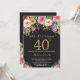 Convite para aniversário de 40 anos de Surpresa Floral para Mulheres. Flor Floral de Aquarela. Glitter preto e Dourado. Rosa, Amarelo, Laranja, Flor Roxo. Aniversário Adulto. Para mais personalização, clique no botão "Personalizar" e use nossa ferramenta de design para modificar este modelo.