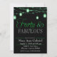 Esta fonte verde, elegante, na moda verde convite de aniversário, também tem potes verdes brilhantes de mason.