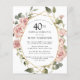Bonito rosas rosa poeirentas criam uma fronteira floral moderna neste convite de festas aniversário de 40 anos.