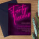O convite minimalista com as luzes Neon design e a cor rosa Fuschia foi usada no título para dar ao convite um olhar tantalizante com granito violeta escuro como textura no fundo para combinar.
