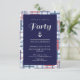 Este convite à apresentação de 40 anos, estilo "yacht clube" náutico, verão, praia, apresenta um padrão de madras vermelho, branco e azul com uma camada azul marinho. O texto "quarenta" está no estilo "folha de alumínio" com uma âncora prateada correspondente. O texto pode ser personalizado para sua ocasião especial que antecede a celebração de um aniversário de 40 anos.