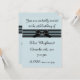Preto e azul definem o tom para este convite de festas elegante, com um fundo azul e uma fita e um arco listrados passando pelo meio. Personalize o texto nos lados frontal e inverso desta placa para personalizá-lo.