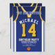 Celebre seu dia especial com este Convite de Aniversário de Basball Jersey, projetado para fãs de basquete verdadeiros! Com uma design ousada de camisa inspirada pelas icônicas cores roxa e dourada, este convite é perfeito para crianças, adolescentes e adultos que adoram o jogo. Personalize-o facilmente com seu nome, idade, detalhes de festas e até mesmo o número do grupo em apenas alguns cliques. Disponível em vários tamanhos, impresso em papel de qualidade superior com uma grande variedade de acabamentos para corresponder ao seu estilo. Escolha dentre diferentes tipos de papel, impressão rápida e envio rápido para que seus convites cheguem a tempo. Seja para uma festa com tema desportivo ou para uma comemoração de fãs Lakers, este convite é a forma perfeita de entusiasmar os vossos convidados.