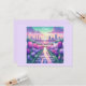 Uma via de cor macia com uma paisagem urbana ao fundo com lindas flores de tulipas ao longo dos lados, em pinks e roxos. O fundo é macio. Altere a cor e personalize como desejado para o seu evento.