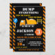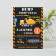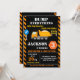 Convite de aniversário de construção O caminhão Dump convida a festa de aniversário Boy. Amarelo e laranja Convite para festa de aniversário de menino com caminhão de lixo grande e algum equipamento de construção. Parar o tráfego Feche a estrada e simplesmente edite este modelo fácil de usar no menu Personalização.
